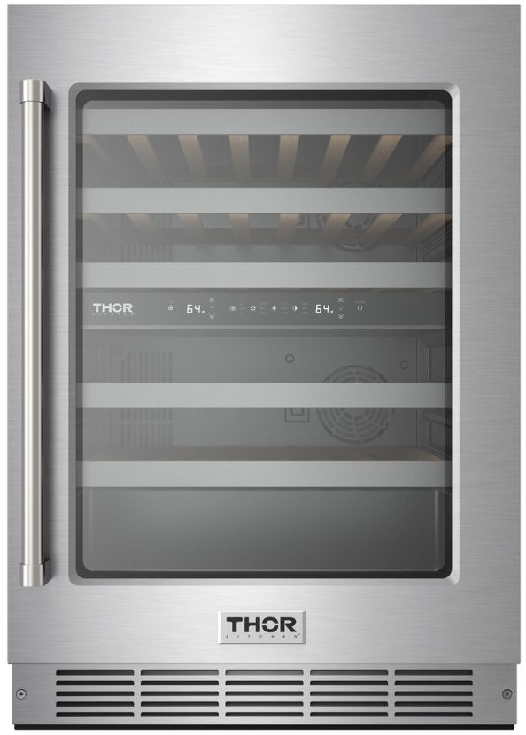 THOR Kitchen offers the power and performance of a premium professional appliance at a practical price. Experience premium wine storage with the TWC24UD 24-Inch Dual Zone Wine Cooler, designed for both casual collectors and serious connoisseurs. With dual-zone temperature control and space for up to 46 standard bottles, this sleek undercounter cooler offers precise preservation for red, white, and sparkling wines — all in one beautifully lit display.Read More