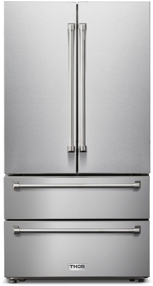 THOR Kitchen offers the power and performance of a premium professional appliance at a practical price. THOR Kitchen's 36 Inch Professional French Door Refrigerator with two separate Freezer Drawers provides ample storage and keeps everything as cool, crisp, cold and/or frozen as the recipe calls for.Read More